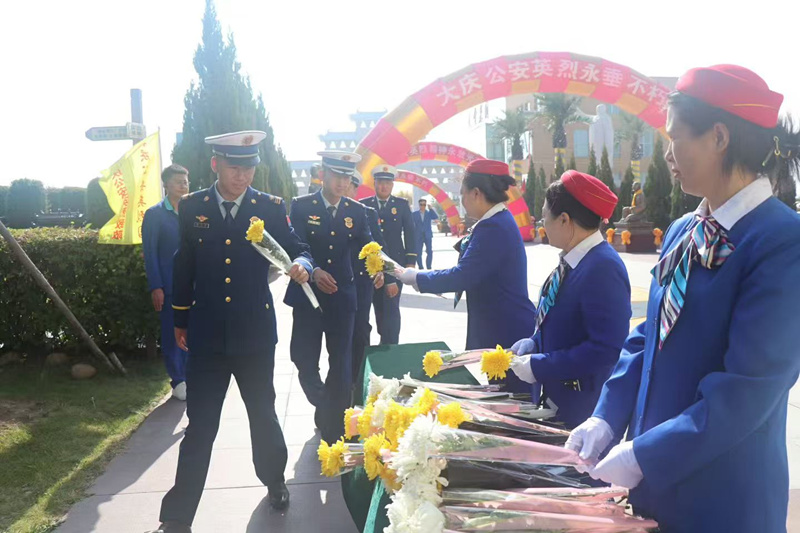 今天是烈士纪念日,让胡路区消防大队来天堂墓园执行保卫大庆公安局祭祀公安英烈活动。
