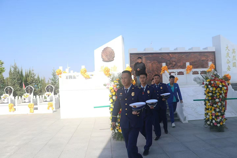 今天是烈士纪念日,让胡路区消防大队来天堂墓园执行保卫大庆公安局祭祀公安英烈活动。