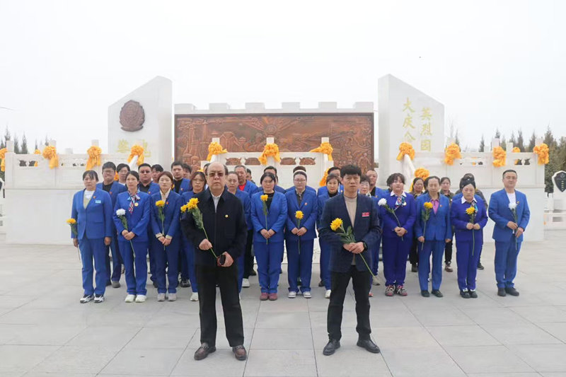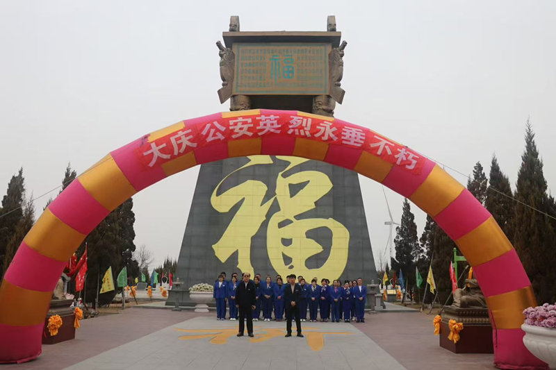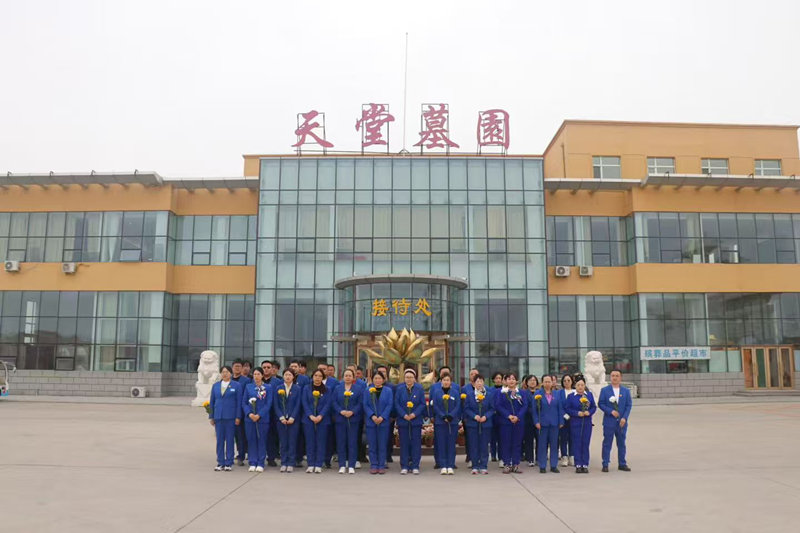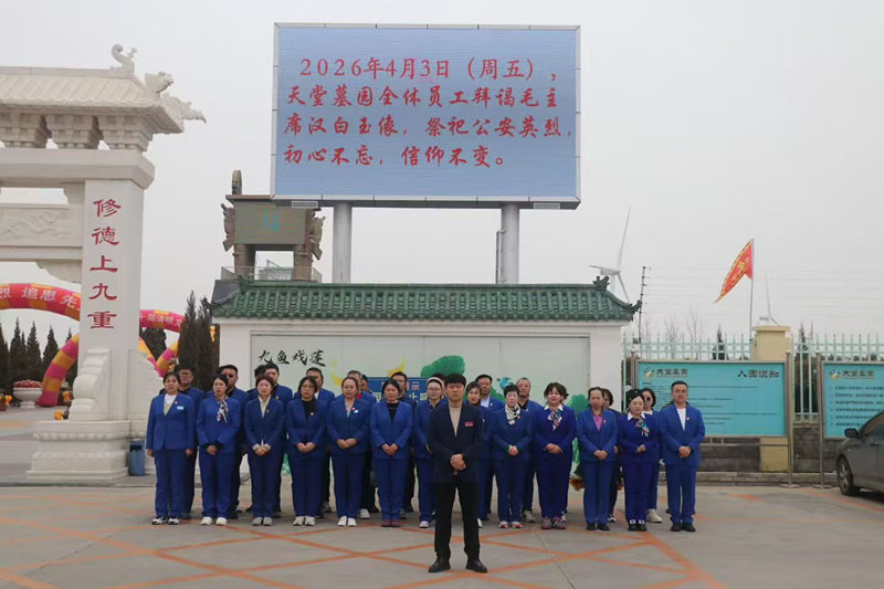 4月3日(星期五)上午,天堂墓园员工除接待祭祀公安英烈各界团体外,列队拜谒毛主席汉白玉像,向大庆公安英烈献花敬礼。