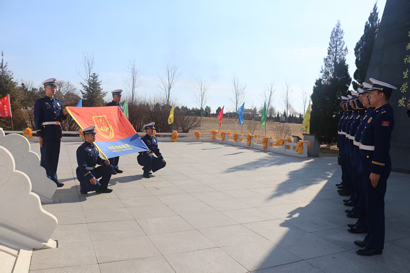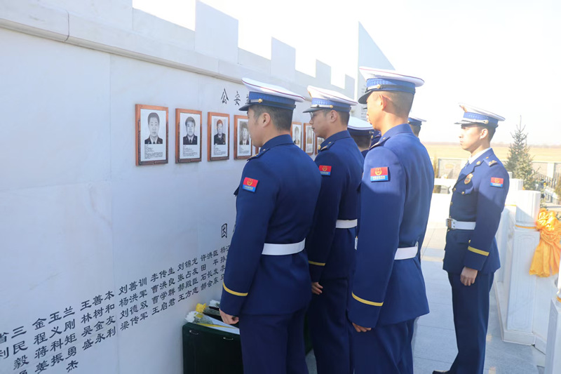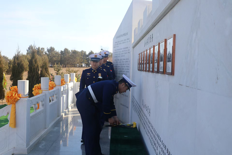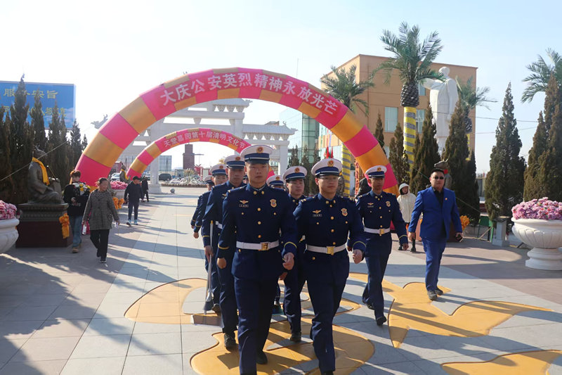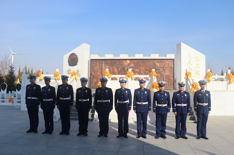 到大庆公安英烈园,向英烈们脱帽、默哀、敬礼、献花。